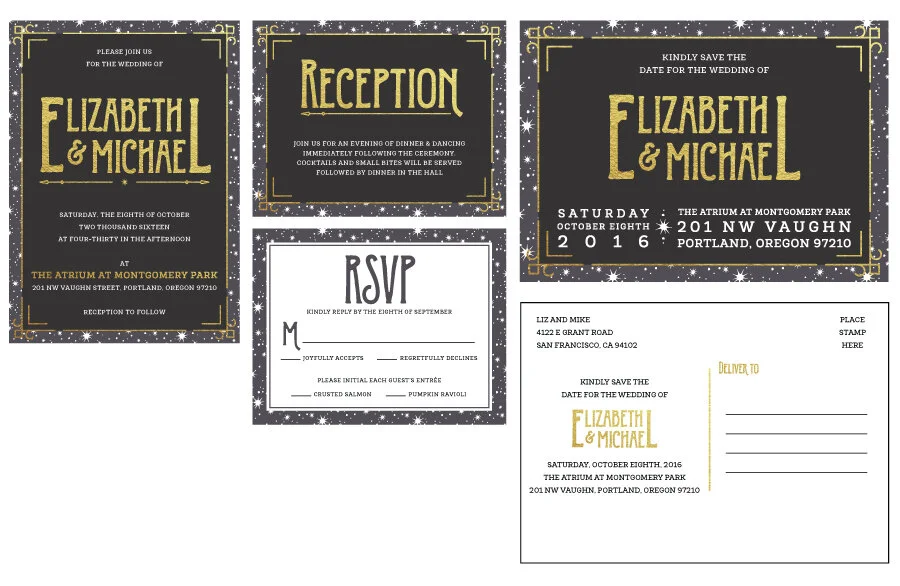 As seen above, while I was a Designer for Minted I would receive cards from the clients. They would come to us with the updated information that had their specific venue, names, etc. but the design would be a mess. It was our job to take the information and make it fit as closely as possible to the original design. While the overall process was quite simple, the key was accuracy and speed. By doing this process over and over, I was able to find dozens of ways to refine my process until I could confidently produce 80 to 100 designs during any given workday.