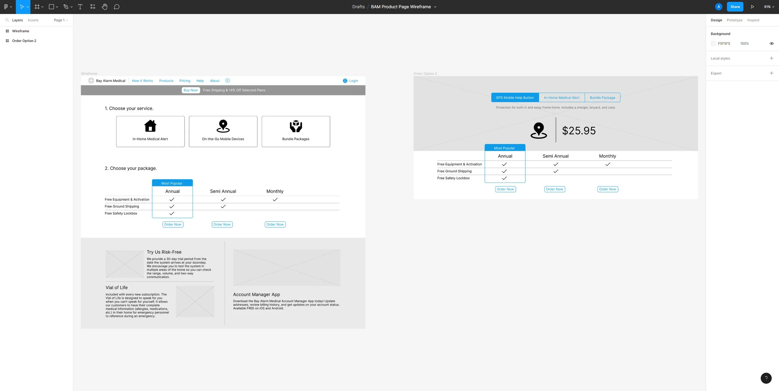 I began with simple wireframes to create a template I could build upon. The initial important things I had to keep in mind while designing was that we had three products that needed to be present in the design, information describing the benefits of each plan, and some way to highlight the plan we wanted customers to select.
